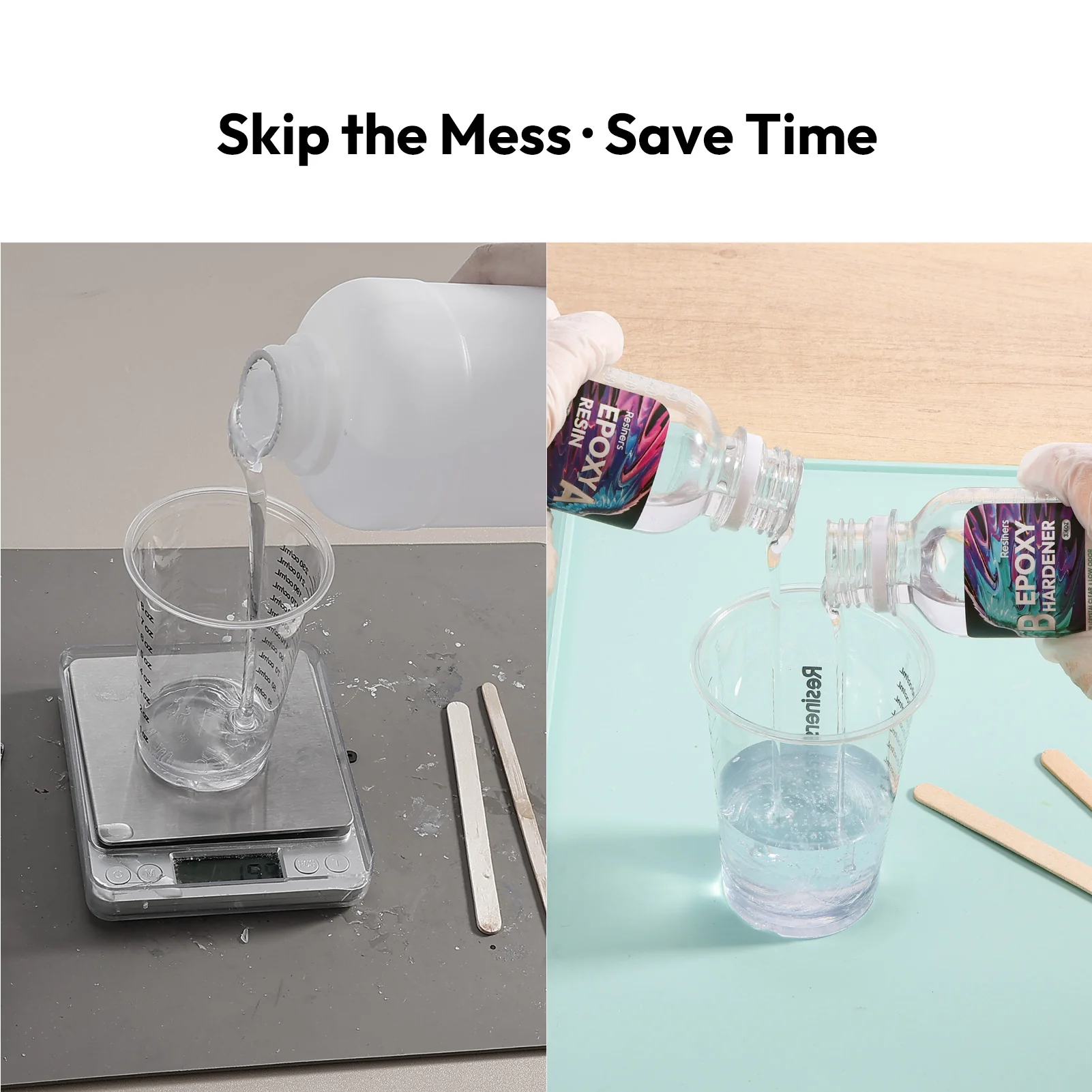 · Complete Starter Kit - Includes 3×3.52oz A resin, 3×3.52oz B hardener, 10 stirring sticks, and 1 manual. 1:1 ratio for easy mixing and vibrant coloring.