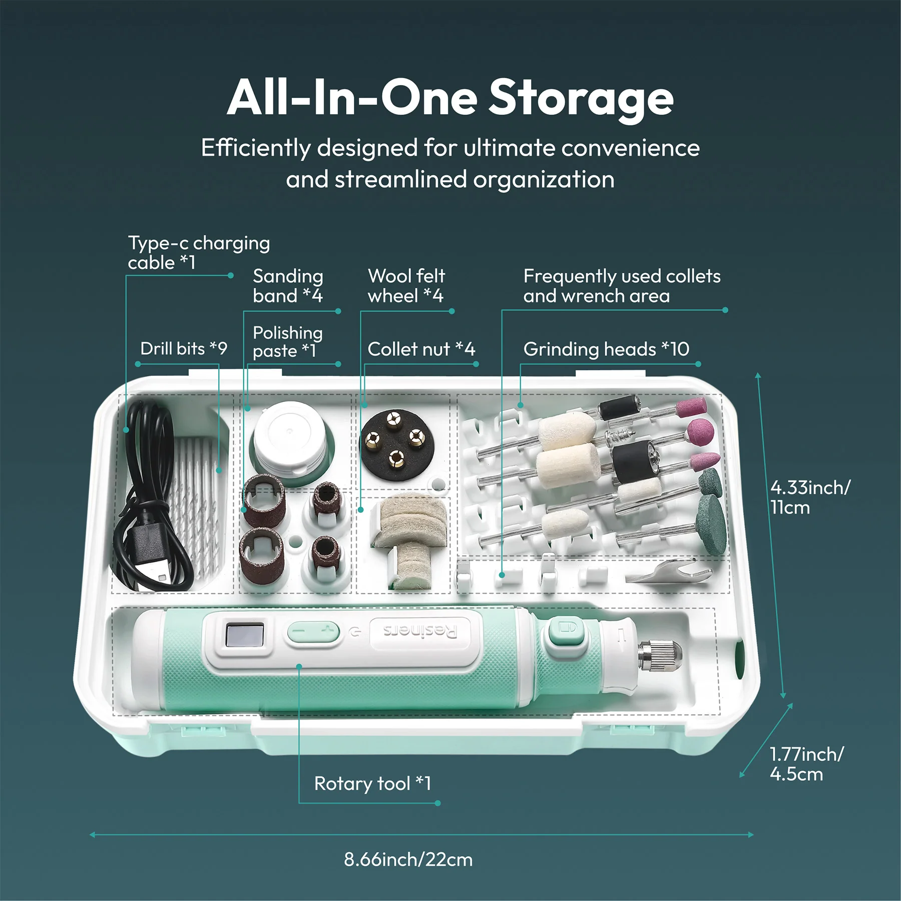 Smart All-In-One Storage - Keep your workspace organized with the custom Resiners storage box. Its compartmental layout provides quick access to tools and secure slots for wrenches and collets — no more lost accessories or cluttered desks, just efficient crafting every time.