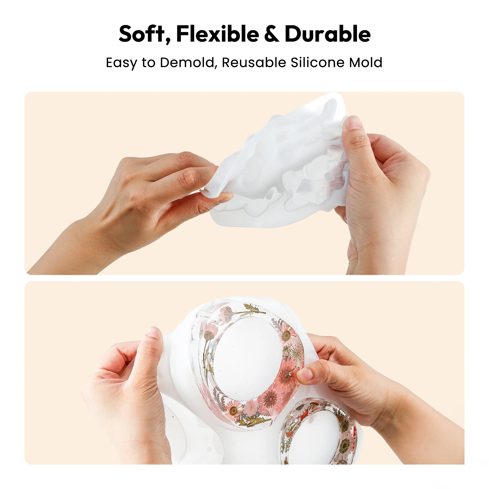 • Durable Silicone & Premium Ribbon – Made from high-elasticity, heat-resistant silicone for smooth demolding without sticking or tearing. Reusable and long-lasting. The included ribbon features a delicate texture, resists fading, and stays secure when hanging.