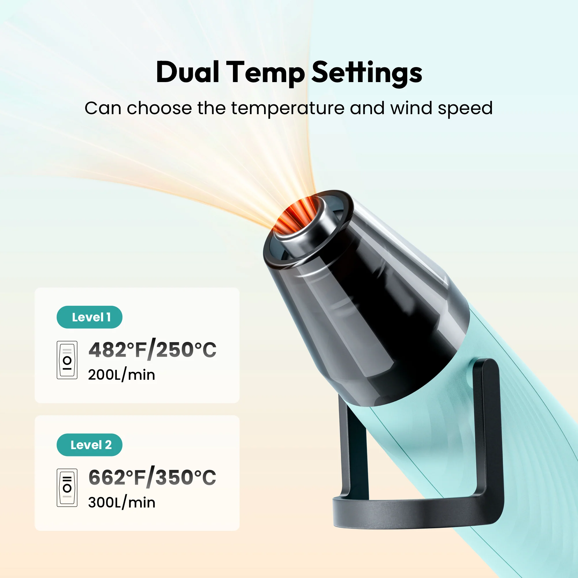 - Dual Temp Setting: This Mini Dual Temp Hot Air Gun Tool is no ordinary heat gun. It gives you the power to choose between a gentle warmth of 482℉ and a more intense heat of 662℉, making it flexible for all your crafting needs.