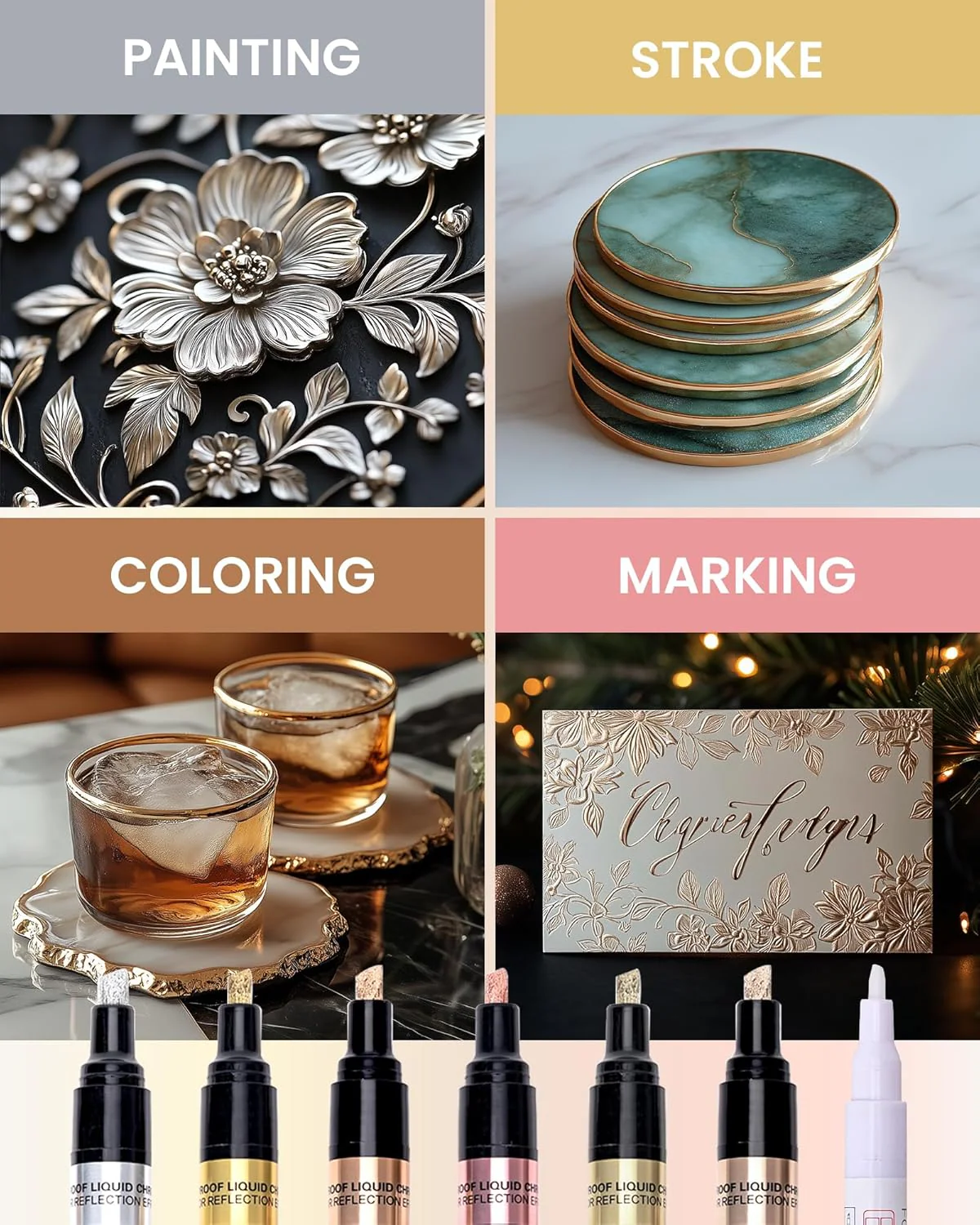- Perfect for Resin Crafts 2-5mm Chrome Marker - Unlike standard paint markers, Resiner's chrome markers are resistant to epoxy resin, making them ideal for resin art and other smooth surfaces. These resin supplies come in four colors (gold, rose gold, silver, and copper) with a writing width of 2-5mm, allowing for thicker and more precise application and control. They are perfect for stroking, painting, and coloring.