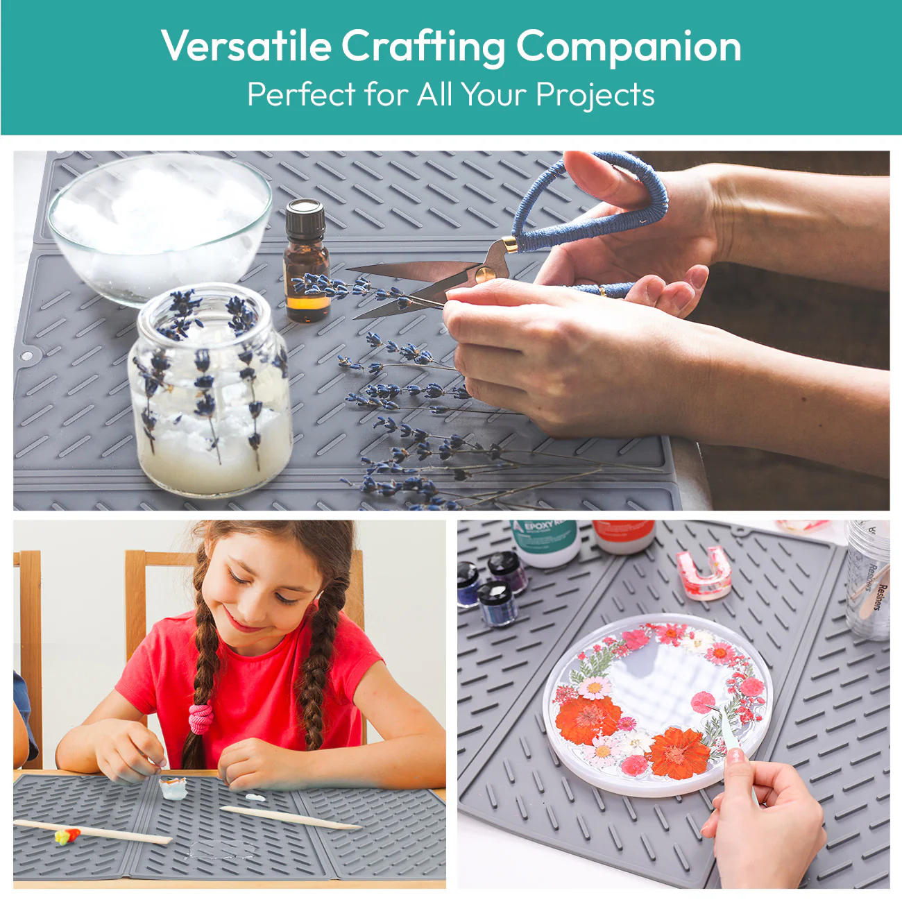 - Trifold, Space-Saving and Portable - Resiners silicone craft mat is designed for easy storage. It folds into three sections, making it simple to hang on hooks or store in tight spaces. Its soft, flexible material allows for effortless transport, so you can take your crafting supplies anywhere without hassle.